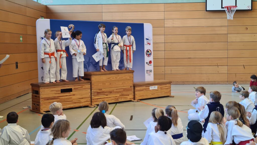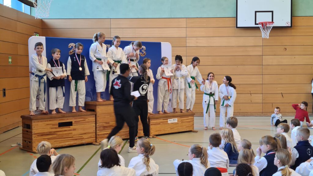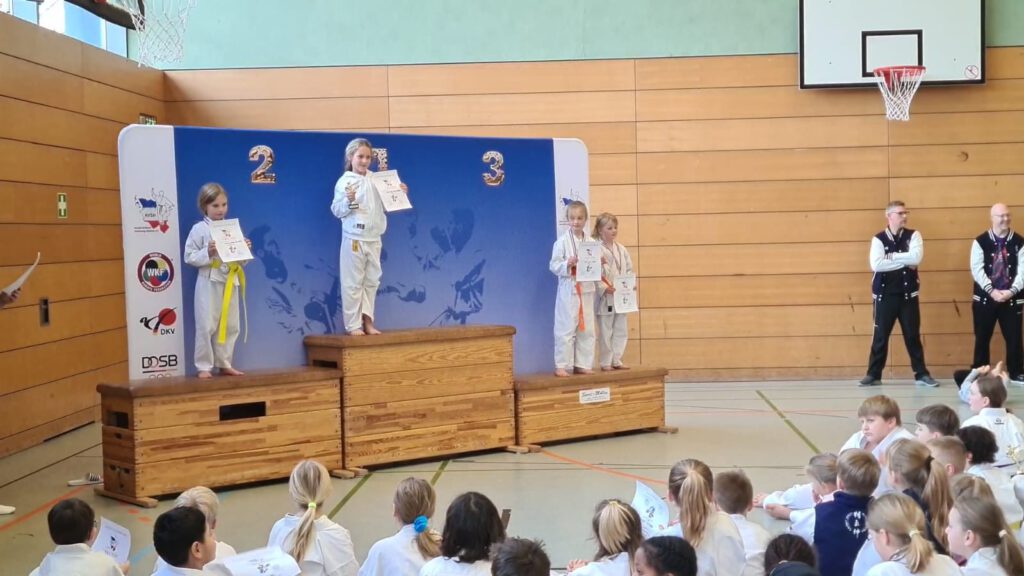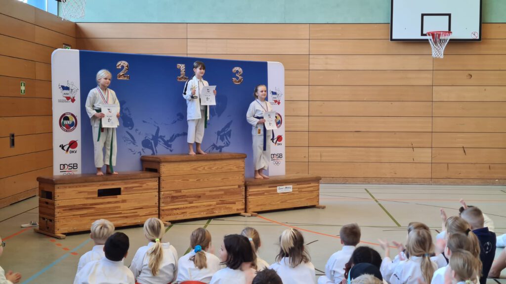 Beim Adventsturnier des KVSH in Eckernförde konnten die Kinder des Shingi-Dojo aus Wankendorf sehr viele Medaillen und Pokale nach Hause holen. Die Kinder starteten alle in ihrer jeweiligen Altersklasse in der Einzel Kategorie und auch fast alle in der Mannschaft Kategorie. Es waren aus Wankendorf 14 Kinder am Start, wovon 13 mit mindestens 1. Medaille abschnitten. Auf den folgenden Bildern sind die Karatekinder auf dem Siegertreppchen zu sehen.