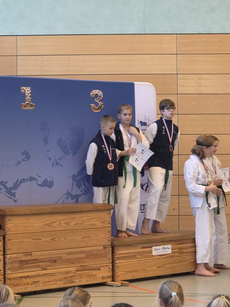 Mit 11 Starter war das Shingi-Dojo bei der Landesmeisterschaft 2025 in Holm vertreten. Alle starteten in der Kategorie Kata. Sie erreichten in den jeweiligen Gruppen drei 3. Plätze, zwei 2. Plätze und einen 1. Platz wie auf den Bilder zu sehen ist. Damit stellt das Dojo das erste mal einen Landesmeister. Leider gab es noch ein sehr umstrittenes Urteil der Kampfrichter in der Kategorie weiblich U18 so das dort eine weitere Platzierung nicht erreicht werden konnte.